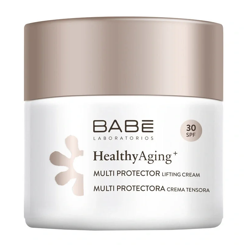 Babe HealthyAging Multi Protector SPF 30 Lifting Cream, cildi yalnızca güneş ışınlarına karşı değil; mavi ışık, kızılötesi ışınlar ve çevresel kirliliğin olumsuz etkilerine karşı da korumaya yardımcı olan çok yönlü bir gündüz bakım kremidir. SPF 30 koruması ile cildi desteklerken aynı zamanda yaşlanma karşıtı bakım sunar.
