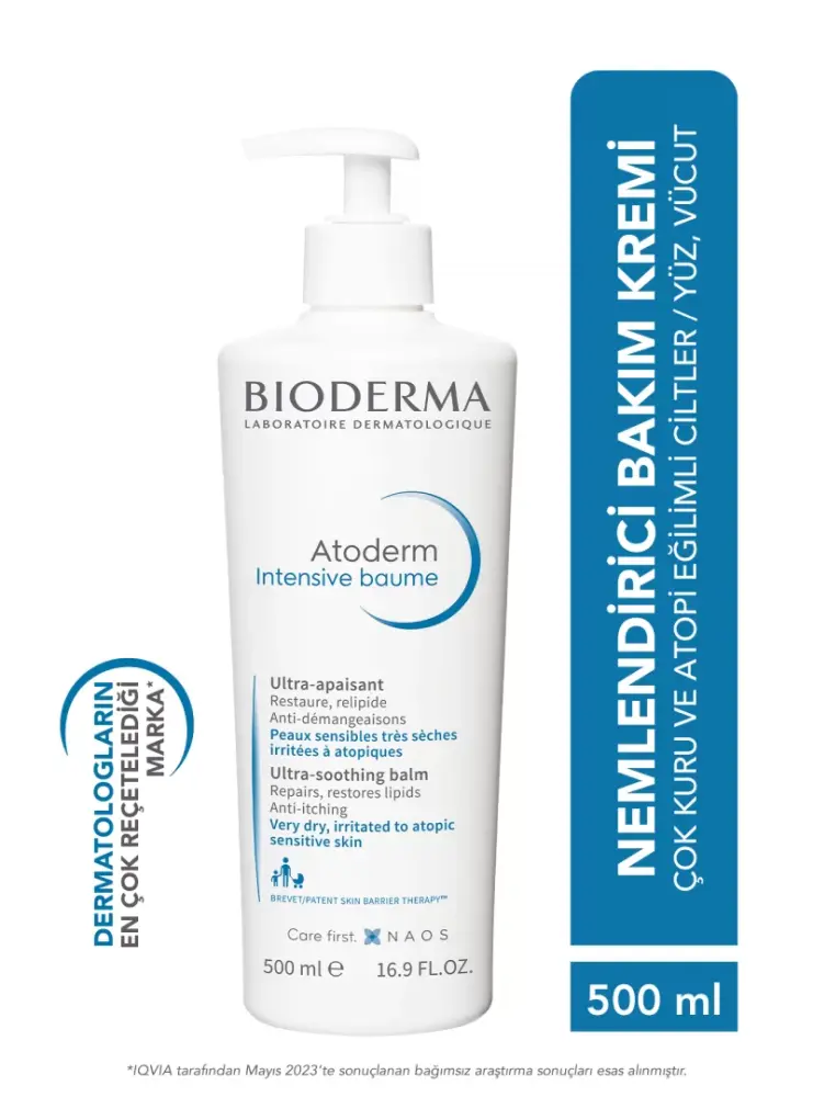 - Bioderma, yoğun cilt kuruluğuna sahip olan kişileri düşünerek, cildin konforunu yeniden sağlamaya destek olması için Atoderm Intensive Balm 500 ml'i üretmiştir.