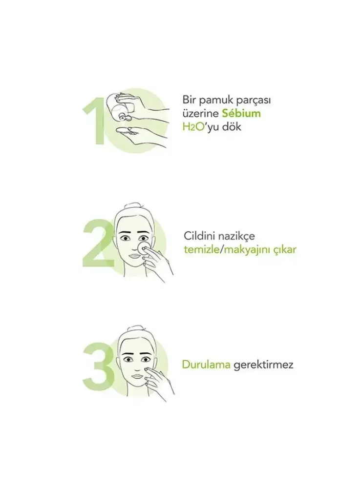 -Bioderma Sebium H2O, cildin durulama gerektirmeden nazikçe arındırılmasına yardım eden misel solüsyondur.