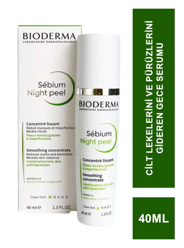 Bioderma Sebium Night Peel 40 ml, cilt lekelerinin ve pürüzlerinin giderilmesinde destek olur.