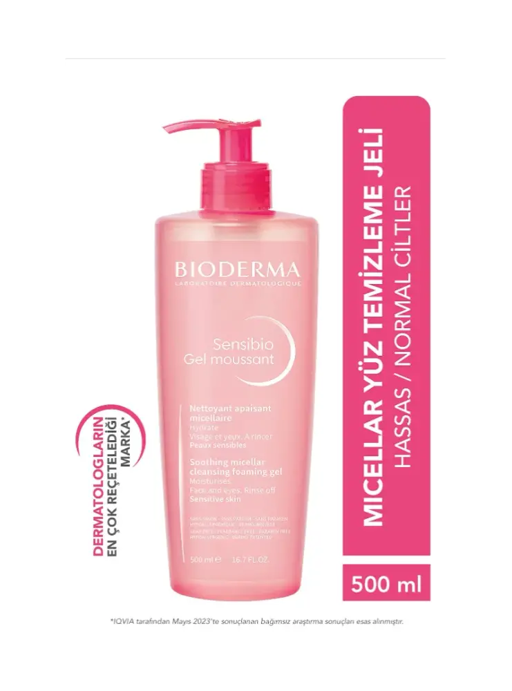 Bioderma Sensibio Foaming Gel 500 ml, cildi nazikçe temizlemeye, makyajdan arındırmaya ve nemlendirmeye destek olur.