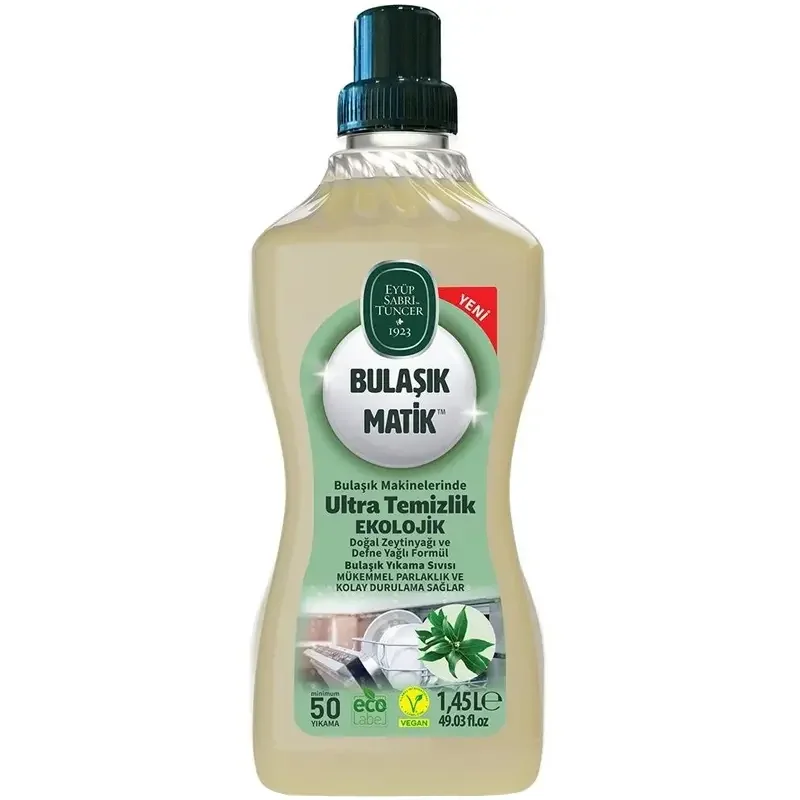 Eyüp Sabri Tuncer Bulaşık Matik, bulaşık makineleri için özel olarak geliştirilmiş, bitkisel içerikli ve ekolojik sertifikalı sıvı bulaşık yıkama deterjanıdır