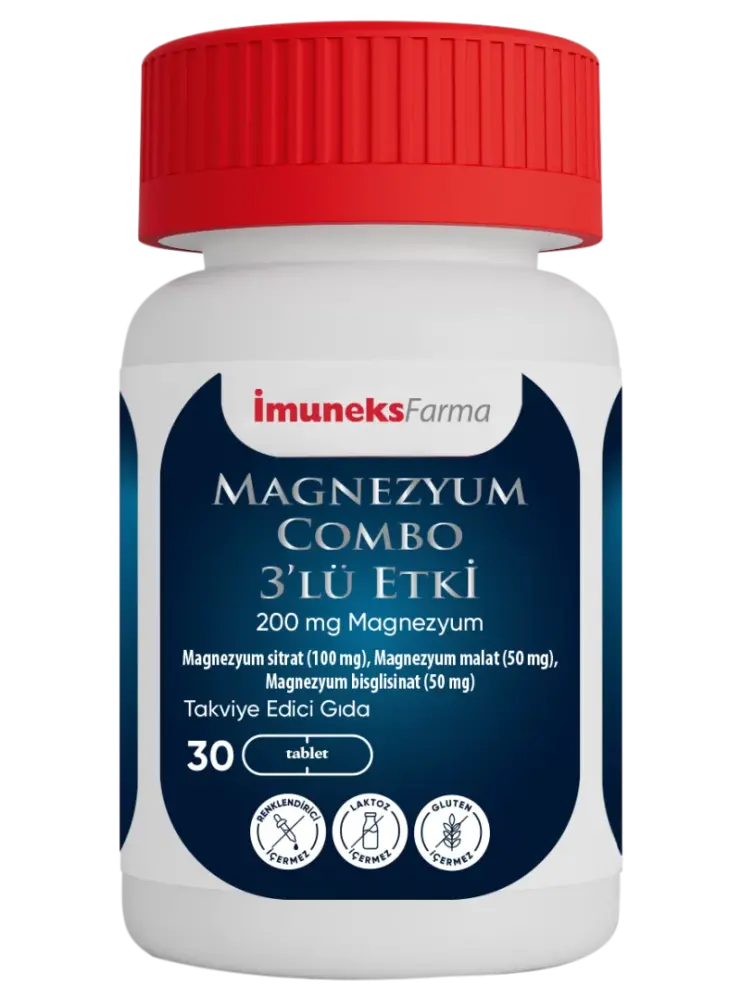 ÖZELLİKLER VE FAYDALAR:Kas Fonksiyonlarını Destekler,Magnezyum, kasların düzgün çalışmasını sağlamak için gereklidir. Kas kramplarının önlenmesine yardımcı olabilir ve kas sağlığını iyileştirebilir. Ayrıca kasların gevşemesi ve kas gerginliğinin azaltılması konusunda fayda sağlar Sinir Sistemi Desteği Magnezyum, sinir hücrelerinin sağlıklı çalışması için gerekli bir mineraldir. Sinir iletimi ve kas hareketi için önemli bir rol oynar. Sinir sistemini rahatlatıcı etkisi sayesinde stres ve kaygı seviyelerinin azalmasına yardımcı olabilir Enerji Metabolizmasını Düzenler Vücuttaki enerji üretimi için temel bir mineral olan magnezyum, yorgunluk ve halsizlik hissinin azalmasına yardımcı olabilir. Hücre düzeyinde enerji üretimini destekleyerek genel enerji seviyelerinin yükselmesine katkı sağlar Kolay Tüketim Tablet formu sayesinde kullanım kolaylığı sağlar. Günlük olarak alınması önerilen 1-2 tablet ile magnezyumun tüm faydalarından yararlanabilirsiniz Bileşen Kombinasyonu İmuneks Magnezyum Combo, magnezyumun etkilerini güçlendiren ek bileşenler içerir. Bu özel formül, vücudun magnezyumu daha verimli bir şekilde kullanmasına yardımcı olur