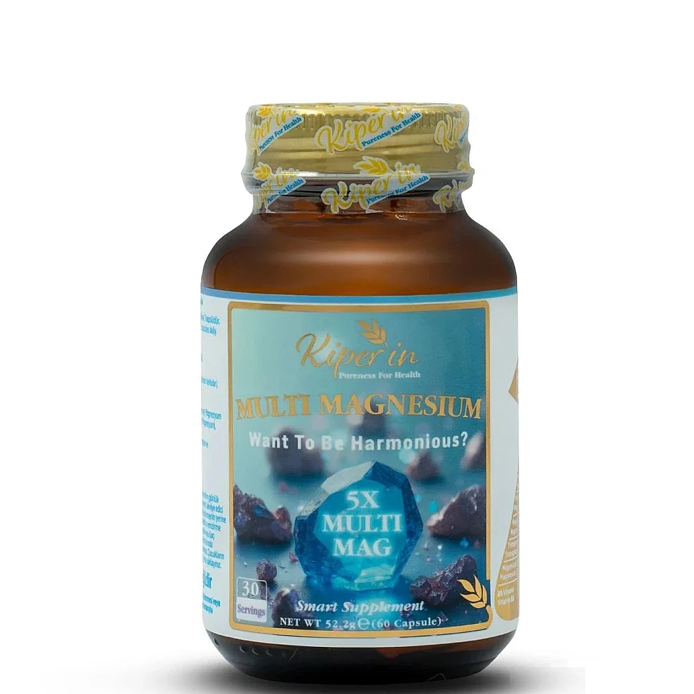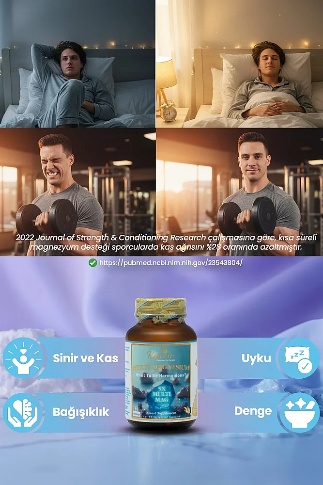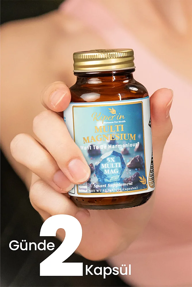 Beş farklı magnezyum türü (Taurat, Bisglisinat, Malat, Sitrat, L-Treonat) ve B6 vitamini içeren gıda takviyesi.