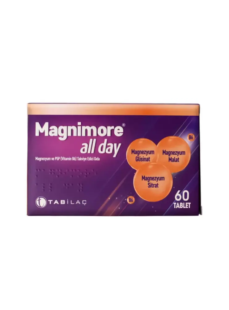 Magnimore All Day 60 Tablet, gün boyu enerji ve zindelik sağlamaya yönelik özel olarak formüle edilmiş bir takviye gıdadır. Yoğun yaşam koşulları, stresli iş ortamları ve fiziksel yorgunlukla başa çıkmanıza yardımcı olmak amacıyla zengin içeriğiyle öne çıkar.