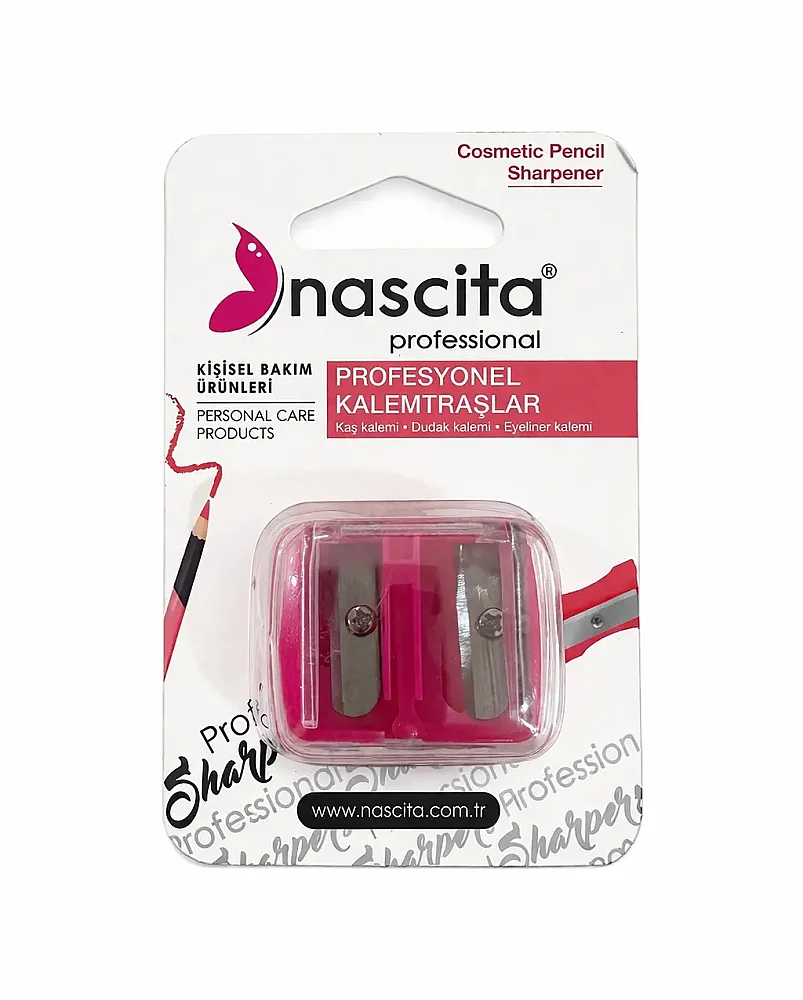 Nascita Kapaklı Çiftli Makyaj Kalemtraşı, göz, dudak ve kaş kalemlerinin uçlarını kolayca açmak için tasarlanmış pratik bir makyaj aksesuarıdır.