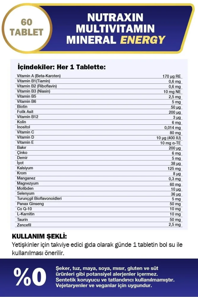 Nutraxin Multivitamin Mineral Energy 60 Tablet
