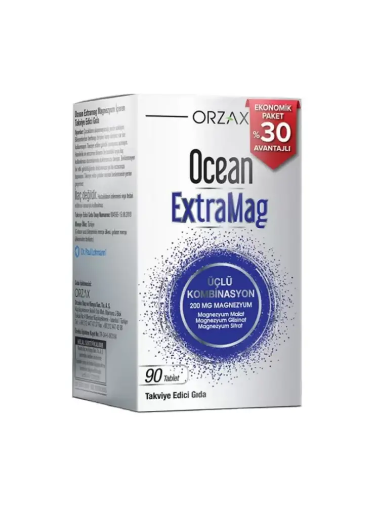 Ocean ExtraMag 90 Tablet, vücudun magnezyum ihtiyacını karşılamaya yönelik güvenilir bir destek sunar. Kas ve sinir sistemi sağlığını destekleyen bu ürün, günlük yaşamın getirdiği stres, yorgunluk ve yoğun fiziksel aktiviteye karşı vücudunuzu güçlendirir. Sağlığınızı desteklemek ve enerji seviyenizi artırmak için ideal bir tercihtir.