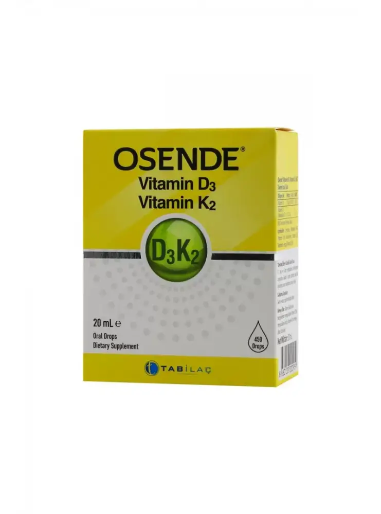 - Osende D3K2 20 ml Damla, D3 ve K2 vitamini içeren sıvı formda bir takviye edici gıda ürünüdür. Bu kombinasyon, kemik sağlığını güçlendirir, bağışıklık sistemini destekler, kalp sağlığını korur ve genel sağlık üzerinde faydalı etkilere sahiptir.