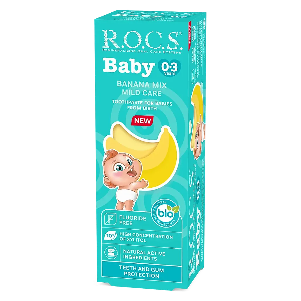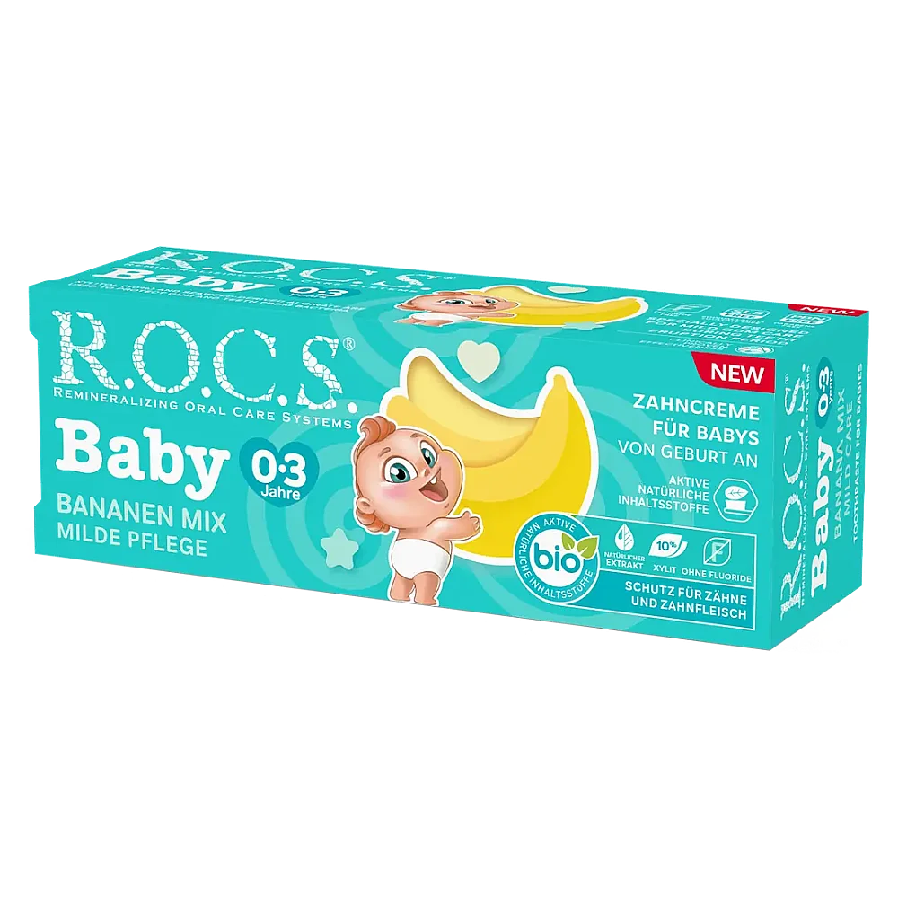 ROCS Baby 0-3 Yaş Muz Püresi Tadında Florürsüz Bebek Diş Macunu, miniklerin diş bakımına nazik bir başlangıç yapmak için tasarlanmıştır. Muz püresi gibi sevilen tadıyla, fırçalama rutininizi daha keyifli hale getirirken günlük ağız bakımına destek olur. Florür içermeyen formülüyle ebeveynlerin tercihlerine uyum sağlar.