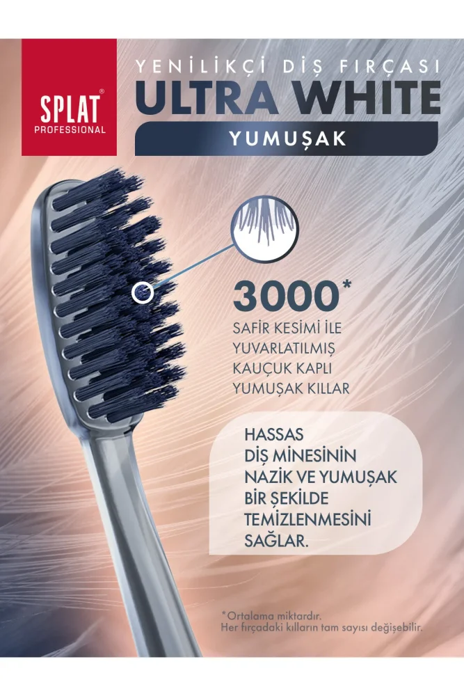 Splat Ultra White Diş Fırçası - Soft, dişlerinizi beyazlatmaya ve temizlemeye yardımcı olan yumuşak kıllara sahip bir diş fırçasıdır. Hem hassas diş etlerine hem de dişlerinize uygun olan bu fırça, etkili ve nazik temizlik sunar, dişlerinizi beyazlatır ve ağız sağlığını korur.