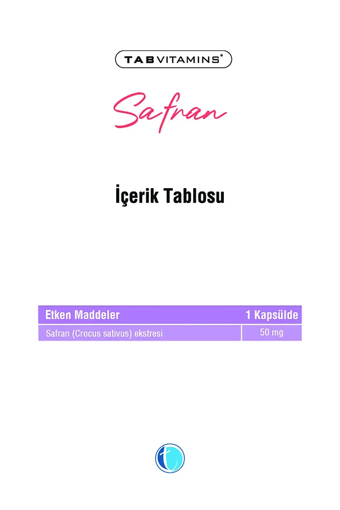 Tabvitamins Safran 50 mg 30 Kapsül
