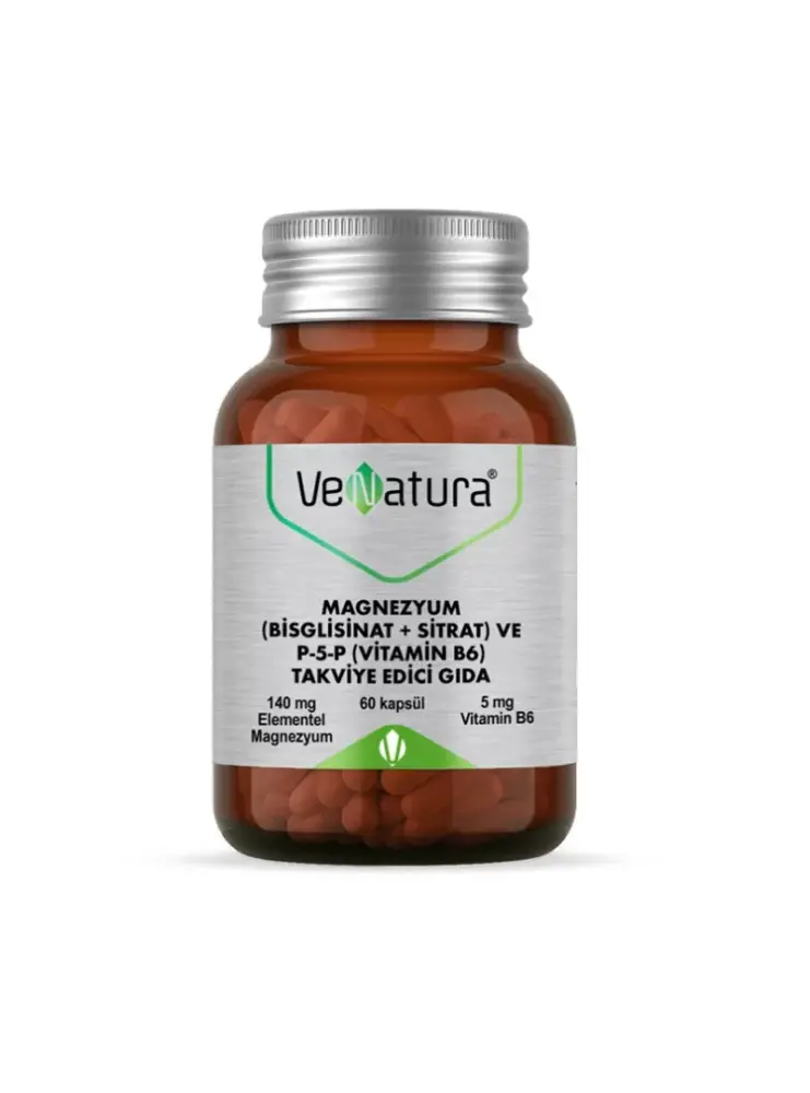 VeNatura Magnezyum -Bisglisinat+Sitrat- ve P5P -Vitamin B6- 60 Kapsül