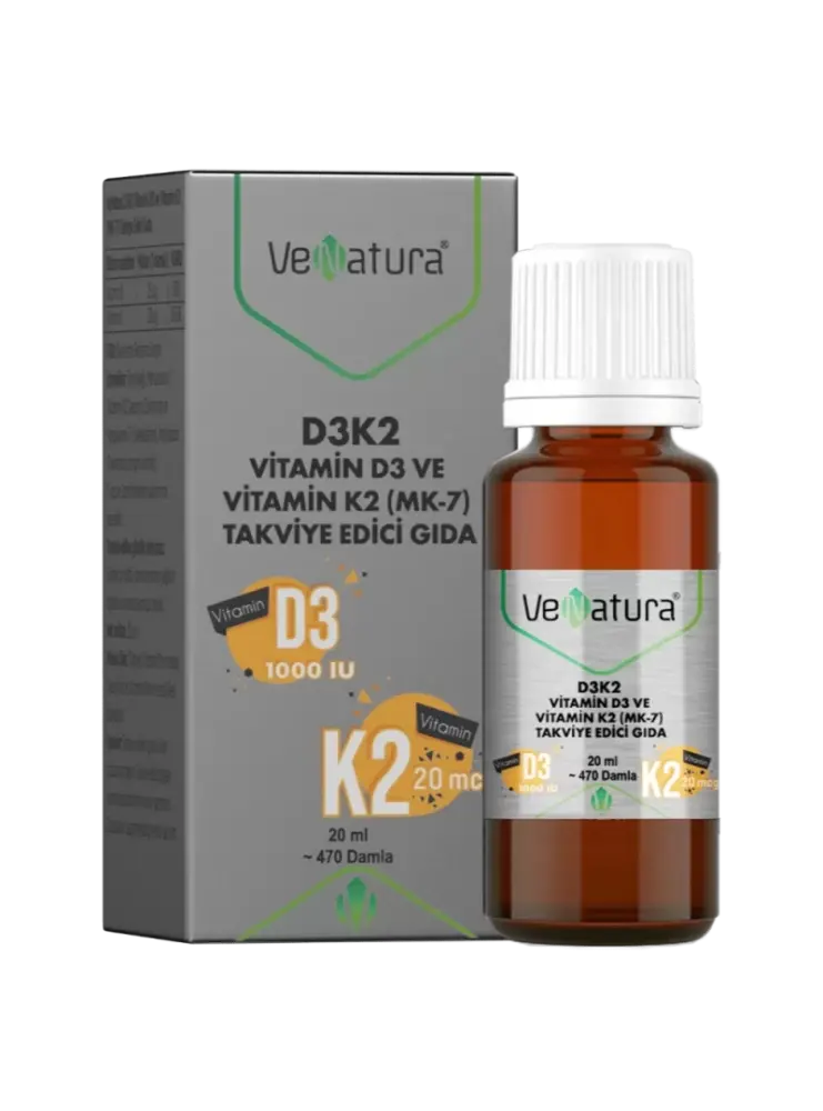 VeNatura Vitamin D3K2 ve Menaquinon 7 Takviye Edici Gıda 20 ml